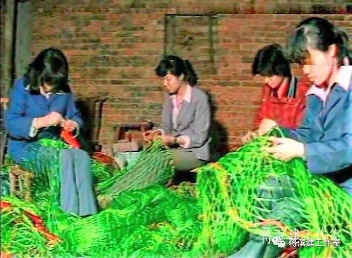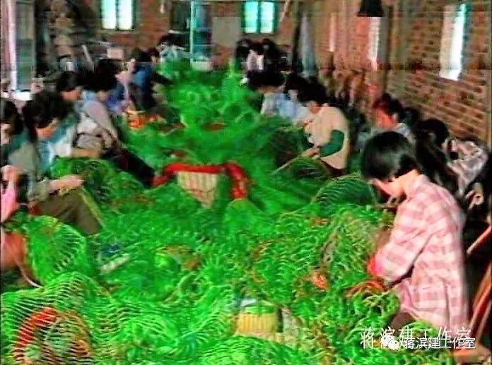 1986年,长乐县梅花渔网厂的妇女正在编织出口渔网